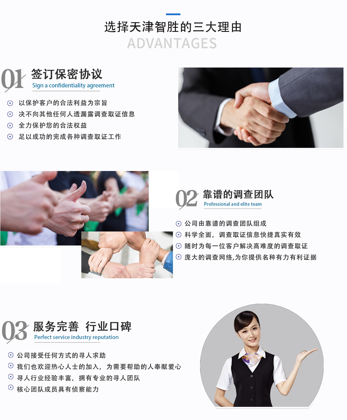 天津南开区智胜信息咨询处是一家立足于天津,正规合法寻车找人公司,公司服务范围包括,婚姻调查,调查婚外情,私人调查,小三分离,侦探调查,出轨调查,跟踪找人、寻人查址、手机的定位找人、寻人找车、要账讨债等。成立十余年来,成功帮助数千位客户解决问题,受到行业内众多好评。根据客户的实际情况进行一对一制定找人方案,签订找人保密协议,不必担心自己隐私泄露,同时我们郑州找人公司承诺见人后收费,价格合适,找人费用划算,一切以客户利益为出发点。